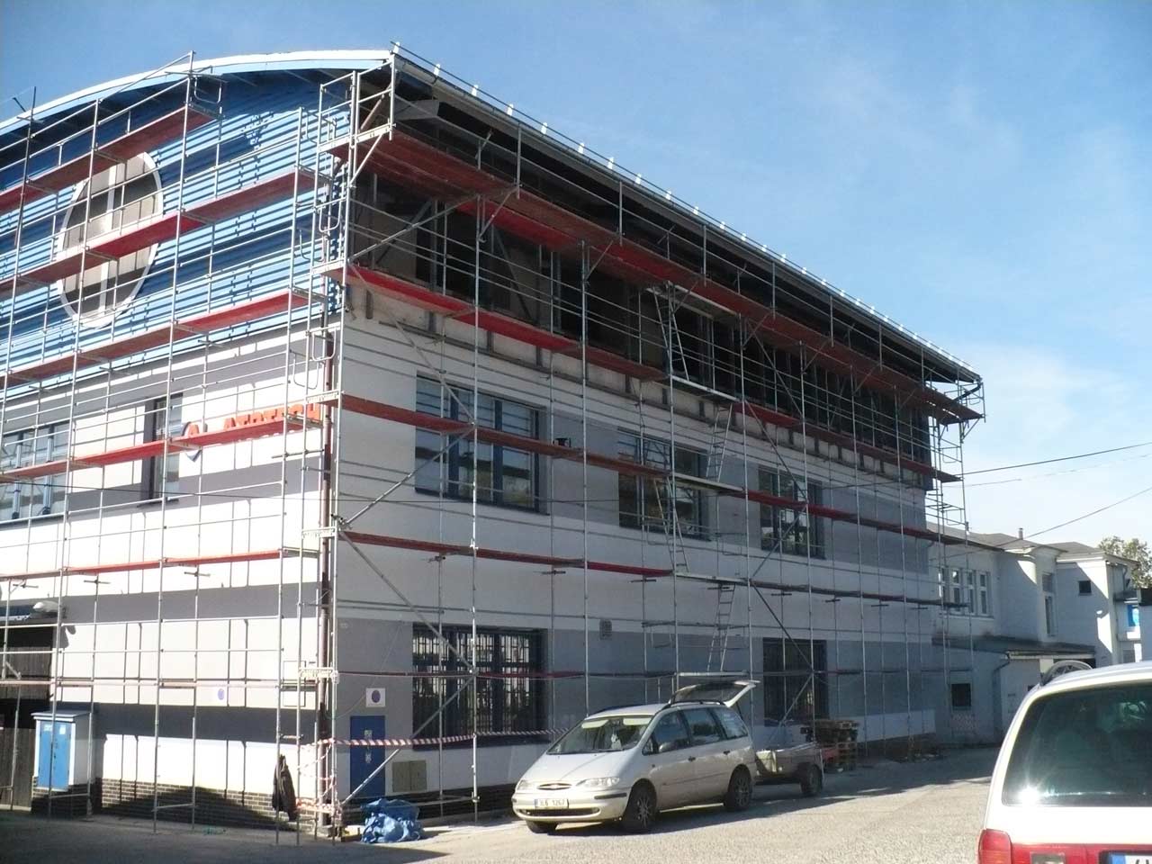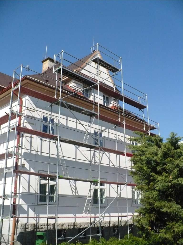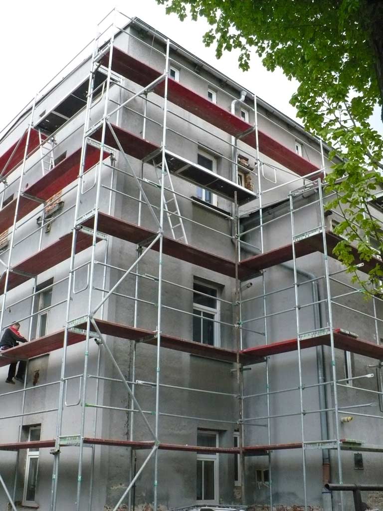 Je zakázáno připevňování jakékoliv další lešeňové konstrukce (trubky, spojky apod.) nebo jiných stavebních zařízení (vrátky, shozy, výtahy, plachty, sítě apod.). To lze pouze po