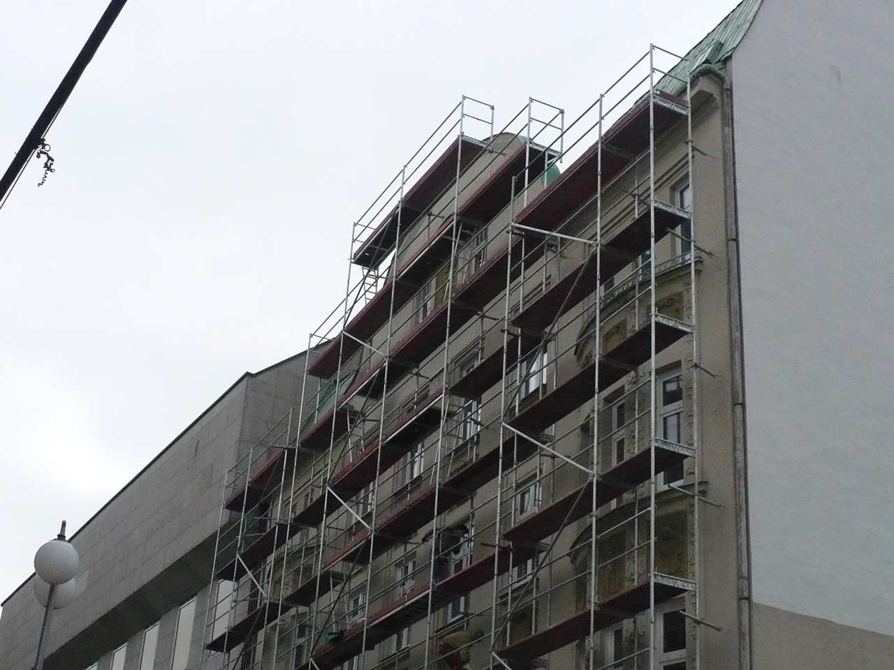 Je zakázáno jakýmkoliv způsobem zasahovat do zhotovitelem předané lešeňové konstrukce (vyjímání lešeňových tyčí, kotev, ztužidel, zarážek apod.)